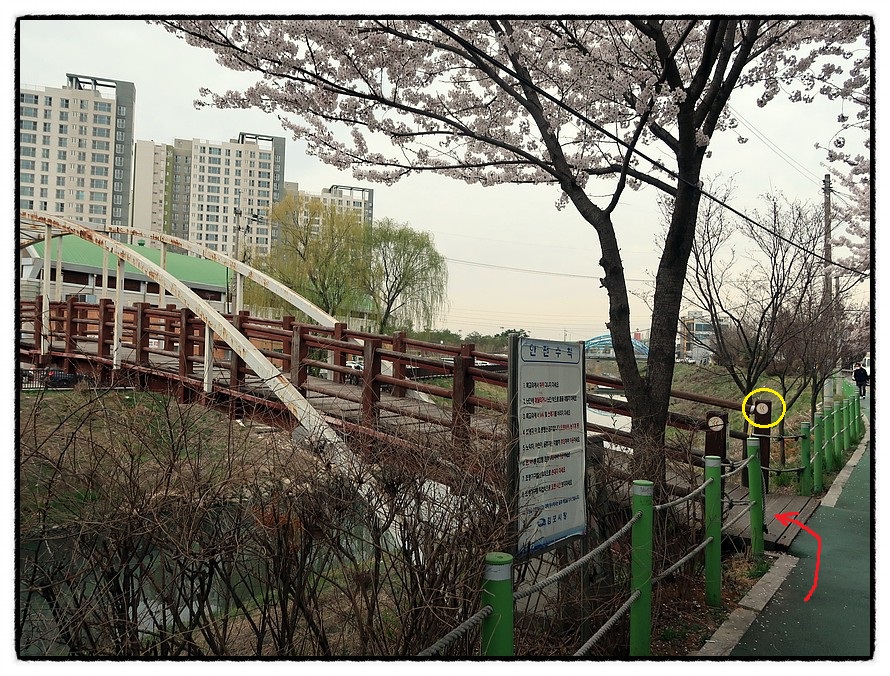 ['계양천산책로' 입구] 1:11 그러면 <계양천> 다리를 건너 <계양천 둑방길>로 들어 가게 되는데
