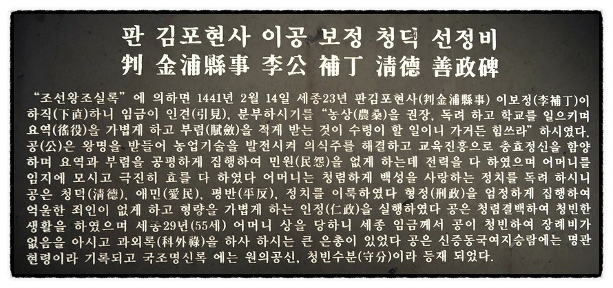 ['선정비'] <김포시청> 앞마당 주차장에는 "선정비군"이 있는데 그 중에서 "이보정 선정비"는 별도로 세워 놨는데 선정을 배푼 돋보이는 인물이었나 봅니다.