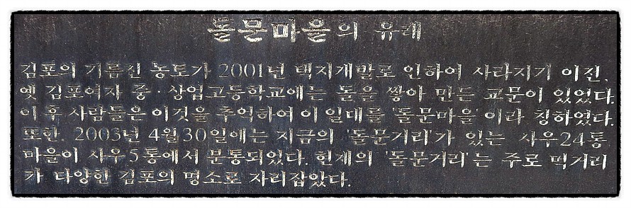 ['돌문마을'] 12:43 <사우사거리>에서 좌회전하여 <48번국도>를 조금 진행하면 "돌문마을"이란 곳을 지나는데 예전에 <김포여자중고등학교>의 정문을 돌을 쌓아 만들었다고 붙여진 이름이라고...ㅎ