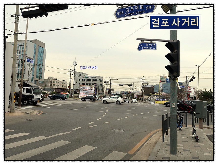 ['걸포사거리'] 1:09 <新48번국도>를 다시 만나는데, "걸포사거리"였습니다. 대각선 방향에 있는 <김포나우병원> 앞으로 건너 갑니다.