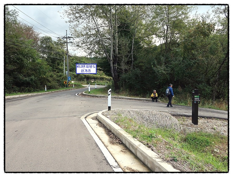 [삼거리] 12:15 삼거리를 만나는데, <평화누리길>이 변경 되기 전에는 좌측 <453번지방도>를 따라 갔습니다만 이젠 <먼맷재길> 고개로 길을 뚫어 우측길로 안내합니다. 왼쪽 <453번지방도>로 가면 쉽지만 거리(8.2km)가 멀고, 우측길은 고갯길로 힘은 좀 들지만 거리(3.78km}가 짧으니 각자 알아서 선택하면 되겠습니다.