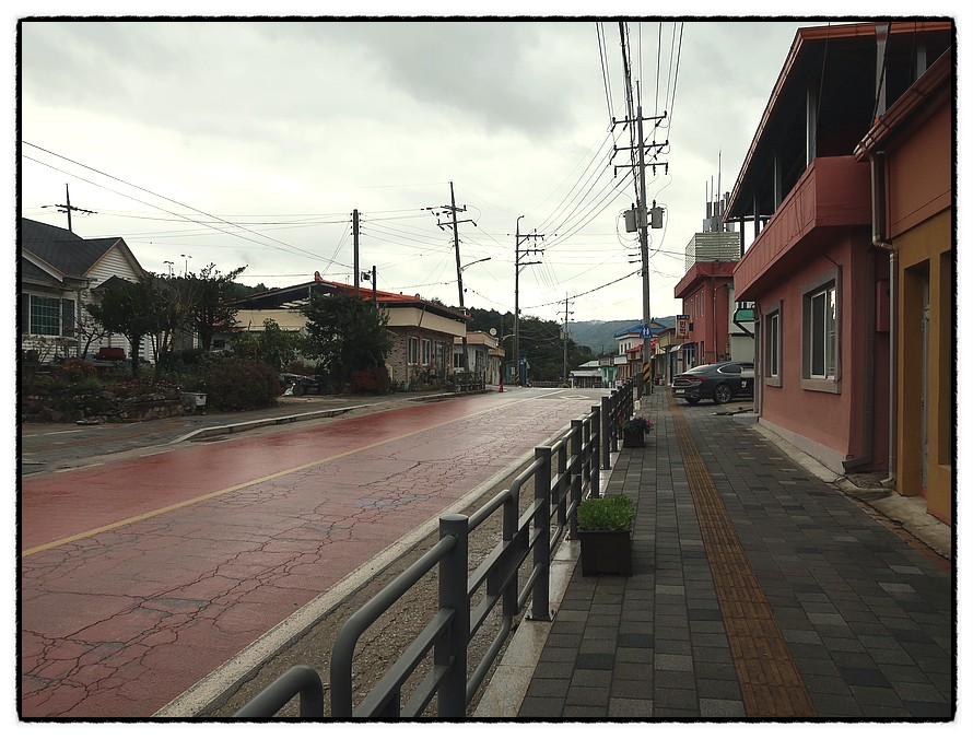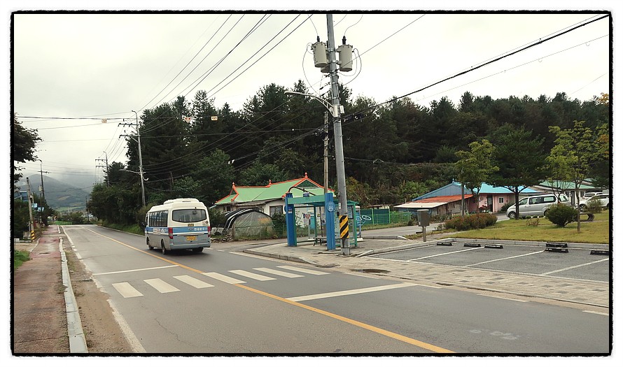 ['오유리' 통과] 11:03 <만대3교>를 지나면 <오유리 五柳里>로 들어가게 되는데 <양구-해안>간을 운행하는 <5번군내버스>가 지나 가는군요. 거리는 한산합니다. 사람 구경하기가 쉽지 않고....
