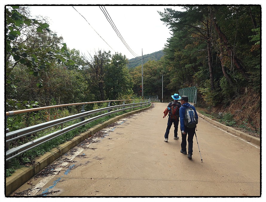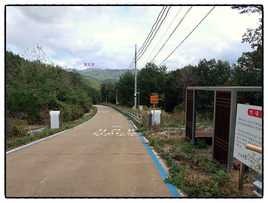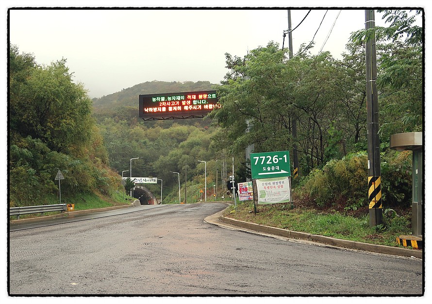 [오름길] 계속해서 20여분 더 완만한 고갯길을 오르는데, 이 고갯길은 임도이겠지만, 교통표지판의 형태로 보아 <군사목적도로>라는게 분명해 보입니다.