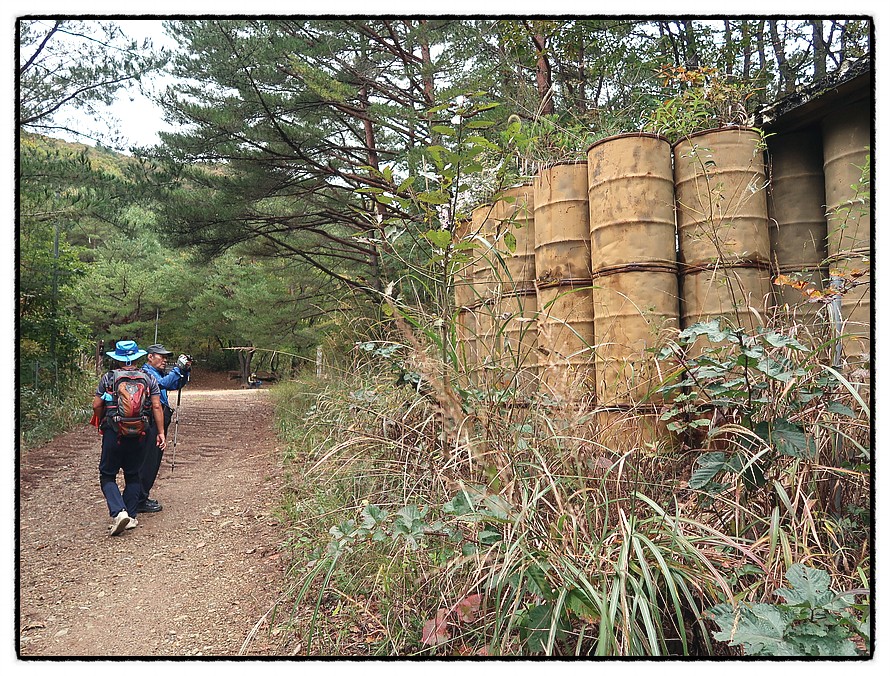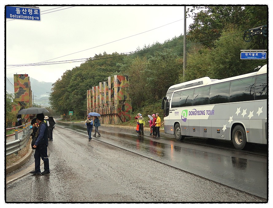 ['드럼통 방호벽'?] 12:59 드럼통을 이용한 방호벽인지 뭔지 드럼통들이 장승처럼 서있는 곳을 지나면