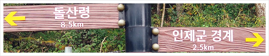 [안내도] <돌산령>에서 "8.5km" 거리이고, 앞으로 진행할 <양구-인제군계>가 있는 고개까지는 "2.5km"라고 알려 줍니다.
