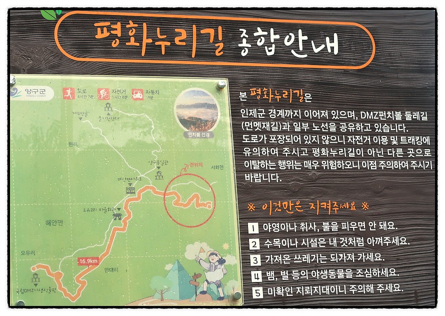 ['13코스 출발지'] 1:13 "평화누리길 인제구간"이 공식적으로 시작되는 곳에 도착했습니다.