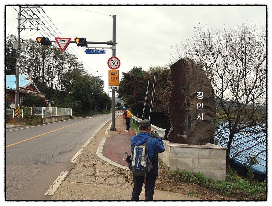 ['정안사' 입구] 11:04 이어서 <정안사> 입구를 만나는데....<오유2리>에는 <정안사>라는 절이 있나 봅니다. 5분 정도 더 진행하여 앞에 보이는 나즈막한 고개를 넘어 가면....