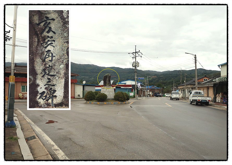 ['해안재건비'] 11:20 이어서 삼거리를 만나는데 "해안재건비 亥安再建之碑"가 있고