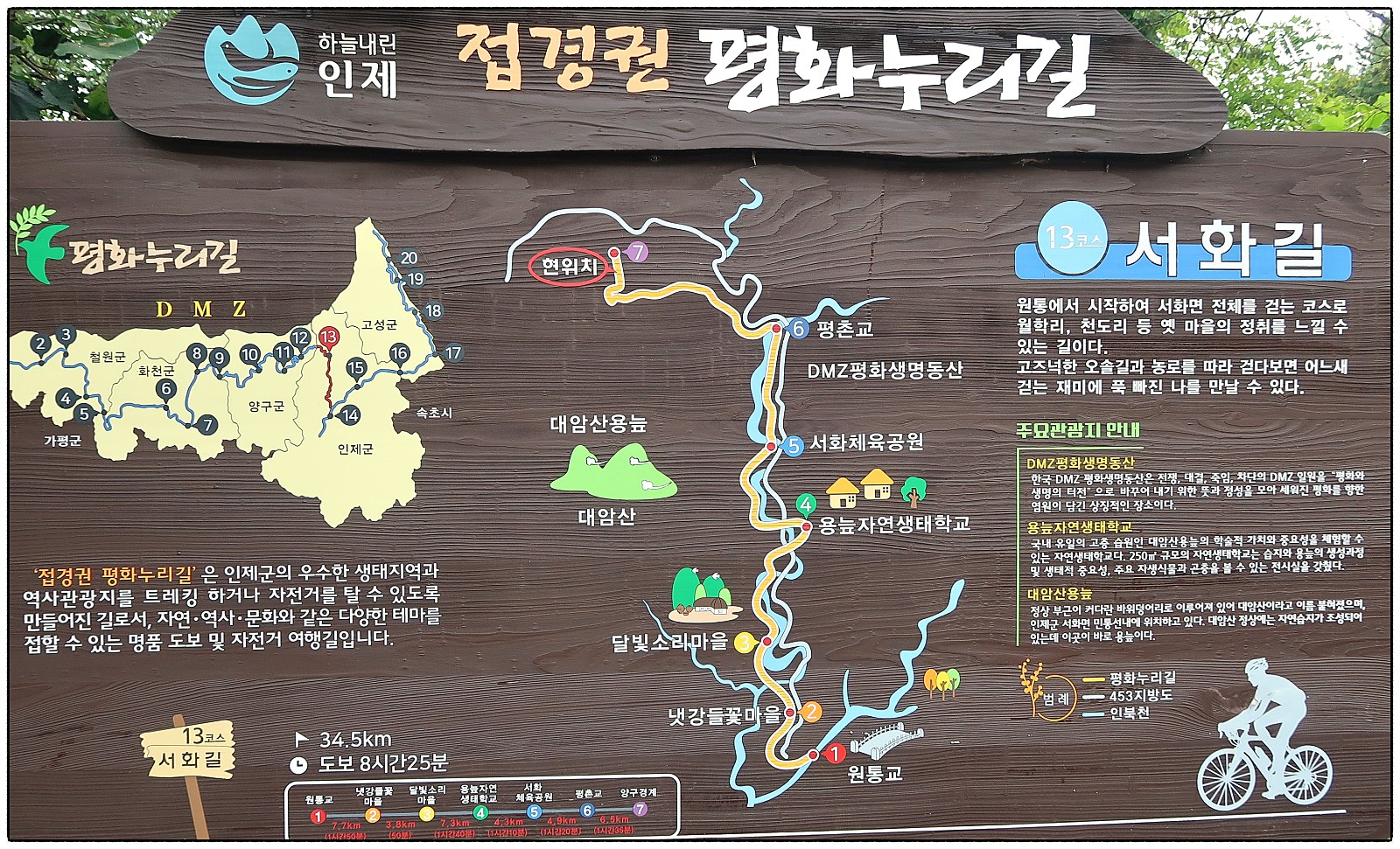 ['평화누리길 인제구간' 13코스 안내도] ★사진을 클릭하면 확대 됨★ "평화누리길 인제구간 제13코스 서화길 안내도"가 있습니다. 더 자세한 안내도를 보고 싶으면 사진을 클릭해 보세요.