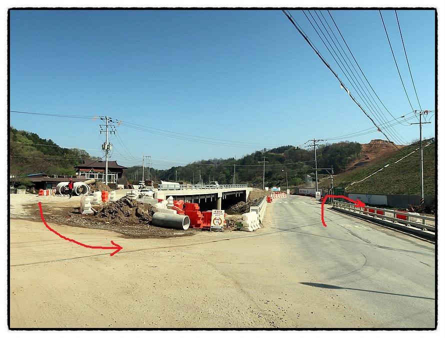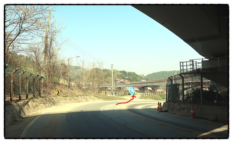 [공사판] 10:37 공사중인 고속도로 다리 밑을 지나면 앞에 보이는 다리를 건너야 하고