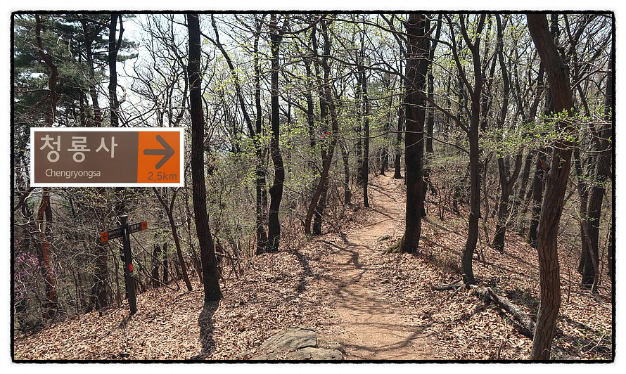 [등산로 들날머리] 1:48 먼지털이기가 있는 등산로 들날머리를 만나고 이어서 <청룡사 후문>을 만나 <청룡사>로 들어 갑니다.