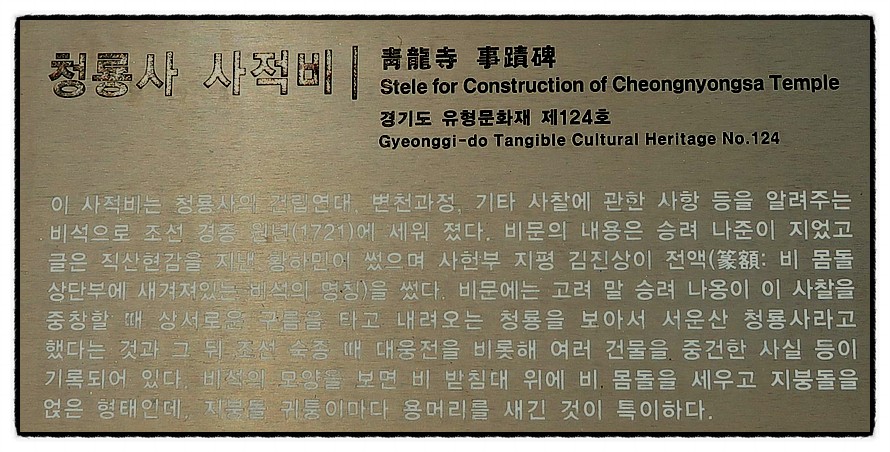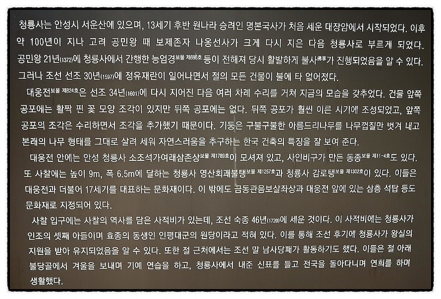 ['안내문'] <청룡사>에 대한 안내문이 있고