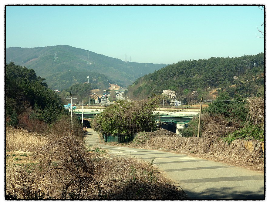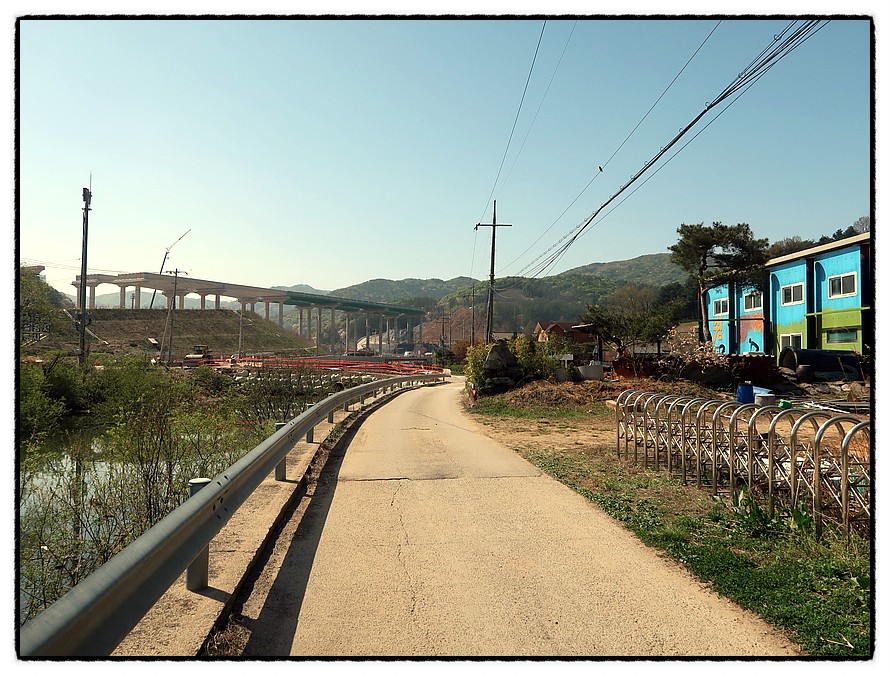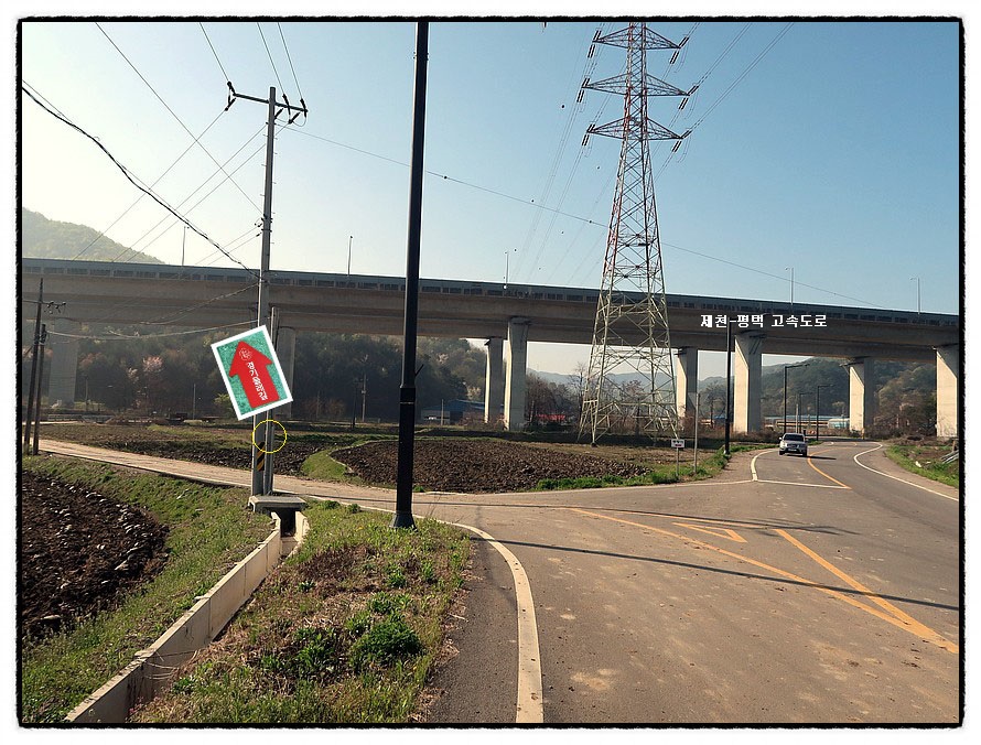 ['제천-평택 고속도로'] 9:08 그러면 <제천-평택 고속도로> 앞 삼거리를 만나는데, 둘레길은 좌측 마을길로 안내됩니다. 그런데 제가 진행해 보니 좌측 마을길은 의미없는 헛걸음이며 거리만 늘리는 것이었으니 후답자들은 그냥 차도를 따라 직진하면 곧 다시 <중터마을 버스정류장>에서 만나 우회전하니 그냥 직진하는게 더 좋다고 생각되니 참고하시고...
