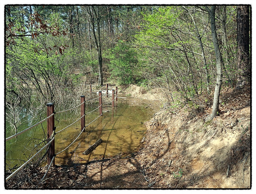 [수렁] 10:12 호숫물에 잠겨있는 수변길을 만나는데 우측 산길을 이용하여 나가면...