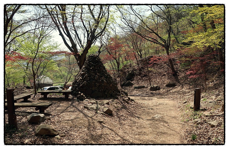 [쉼터] 1:35 길은 안정되며 돌탑이 있는 쉼터를 지나고