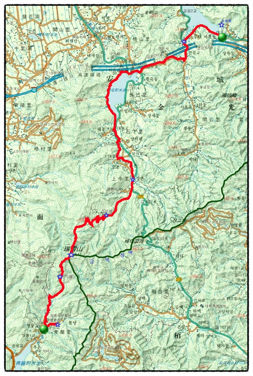 ['상촌마을' 버스종점] 11:09 이어서 <100번 시내버스> 종점인 "상중리 상촌"을 지나는데 12년전 <금북정맥>을 종주 할때 이곳을 찾았던 기억이 납니다. 그 때의 사진을 보여드리면...