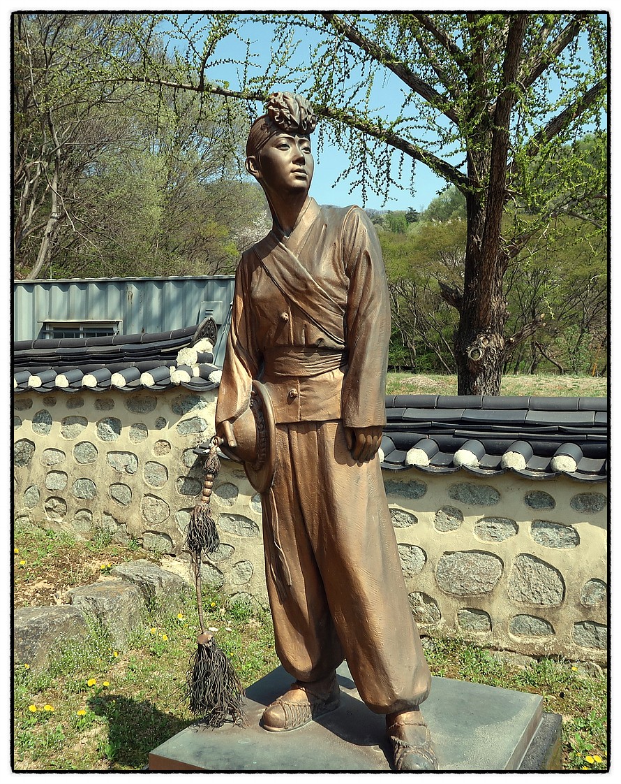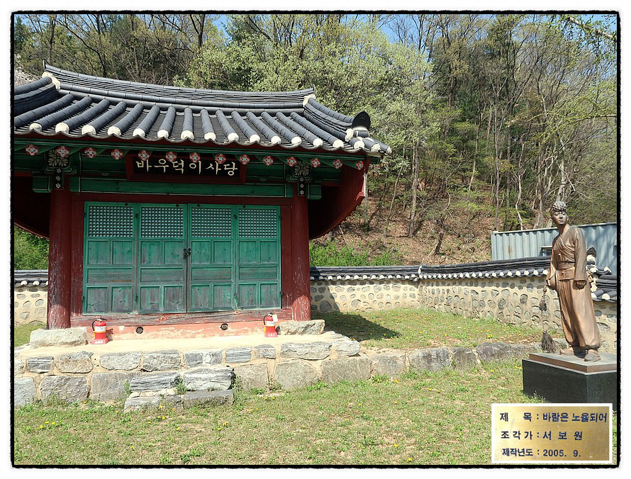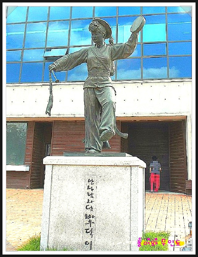 ['바우덕이'] "바우덕이-金岩德" "바우덕이" 이야기 중에 이곳 "청룡사"와 관련되는 마음을 적시는 이야기 하나 더 언급하면, "바우덕이"는 폐병에 걸려 병마와 싸울 때에 자신의 병이 다른 사람들에게 옮겨질까봐 이곳 "청룡사" 절간에 스물한살에 들어와 홀로 지내다 스물세살 꽃다운 나이에 떠났답니다. 남을 배려 할줄도 아는 참여성이었다고 생각됩니다. 요즘 같으면 폐병은 병도 아닌데 시대를 잘못 만나서.... 그 미모, 그 화려한 기예, 노래, 춤...<대원군>과 <고종>이 탄복하며 "정3품"이라는 벼슬에 해당하는 지위를 하사했으니 그야말로 "국민 아이돌 가수, 국민예술인"의 始祖였습니다. 6살에 <안성 남사당패>에 들어와, 15살에 <안성 남사당패> 단원들의 만장일치로 여성 최초의 "꼭두쇠"가 되고 우리나라 최초의 최고 국민 스타로 6년여를 활동하다 너무 일찍 떠난 비운의 소녀 <안성시>는 <바우덕이>를 기리는 기념관과 공연장을 엄청 크게 건설하여 주말마다 공연하고 있는데, "홍어와 무인도" 애독자분들을 위해 특별히 <안성남사당패 공연장> 앞에 있는 "바우덕이 동상" 사진도 보여 드림니다.