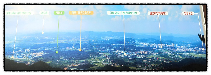 ['안성시내' 조망] ★사진을 클릭하면 확대 됨★ <안성시내>가 조망됩니다만 연무로 시원하지가 못하군요. "안성 安城"에 대해 얼마나 아세요? "안성맞춤"은 안다구요? ㅎ "안성"은 "이상세계를 기다리는 소박한 백성들의 숨결이 있는 곳"이라 할수 있겠습니다. '박지원'의 소설 '허생전'에서 '허생'이 장보기를 나선 곳이 안성이죠, '홍명희'의 역사소설 '임꺽정'의 사연이 깃든 곳이기도 합니다. "바우덕이"라는 우리나라 최초의 여성 대중인기예술가가 "남사당패"를 일군 곳이고 또한 서민들의 인기스타 도둑놈 "장길산"의 무대가 안성이니 이야기 꺼리가 얼마나 많겠습니까 그러나 제일 알려진 것은 <방짜 유기 놋그릇>으로 주문제작하는 "안성맞춤"입니다.