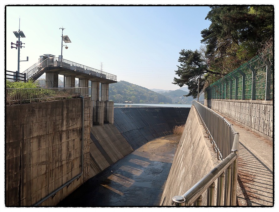 [수로] 9:48~10:02 (14분간 휴식) 댐 우측 수문 옆으로 난 길을 따라 나가서