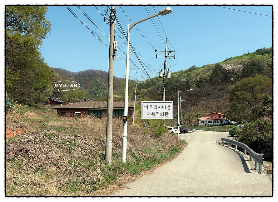 ['바우덕이 마을 다목적회관'] 이어서 "바우덕이 마을 다목적회관"을 만나는데 뒤에 <바우덕이 사당>이 보입니다.
