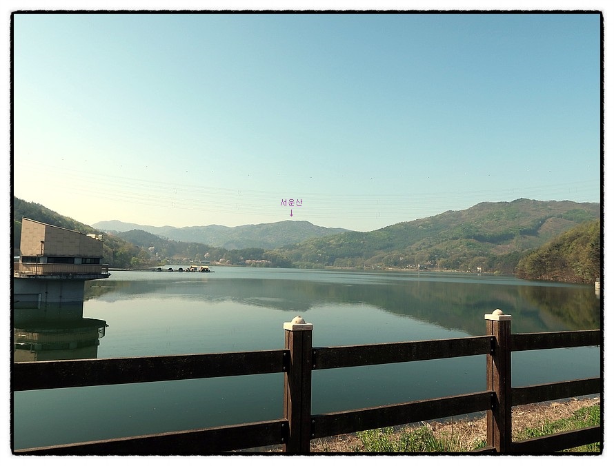 ['마둔호수' 조망] <마둔호수>에서 잠시후 올라야 할 <금북정맥>이 지나는 <서운산>을 조망하고