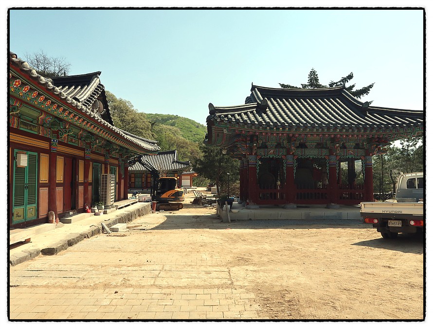 ['은적암' 앞마당] <은적암> 앞마당엔 공사가 진행되고 있는데 차량이 이곳까지 운행되고 있다는 것을 알수 있습니다.
